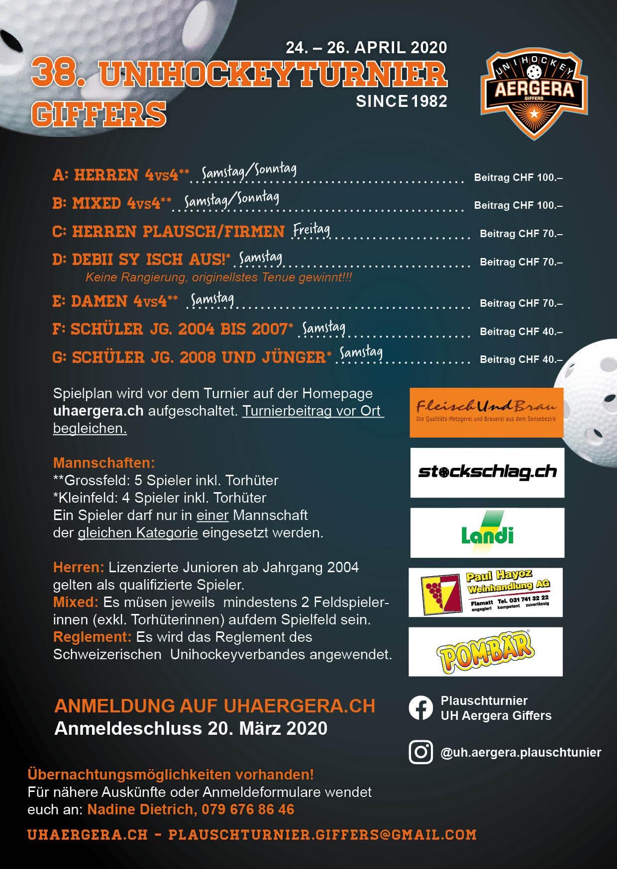 Auch im 2020 findet am letzten April Wochenende das legendäre Plauschturnier in Giffers statt. Wir freuen uns mit euch vom 24. - 26. April 2020 ein ganzes Wochenende zu verbringen!